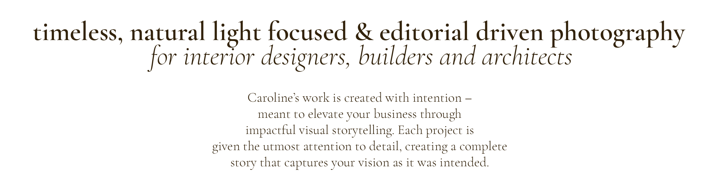INTERIOR & ARCHITECTURAL PHOTOGRAPHY View Portfolio select featured work get in touch Follow on Instagram | @carolinesharpnack